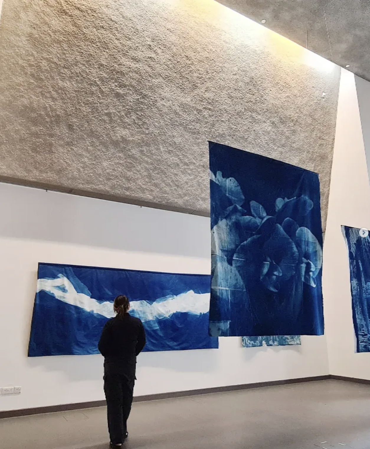 Blue, a potent color, became the language of sublime expression. Blue's multi-dimensional quality allowed Tee to express the nuances of her complex mental struggles. Embracing abstraction, Tee created fragmented collages and photograms, distorting images to mirror perception flooded by anxiety. Cyanotype, in particular, played a therapeutic role, metaphorically materializing hidden aspects of my inner world.